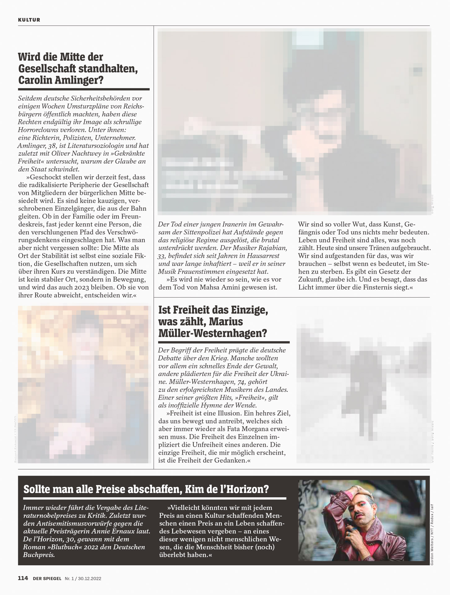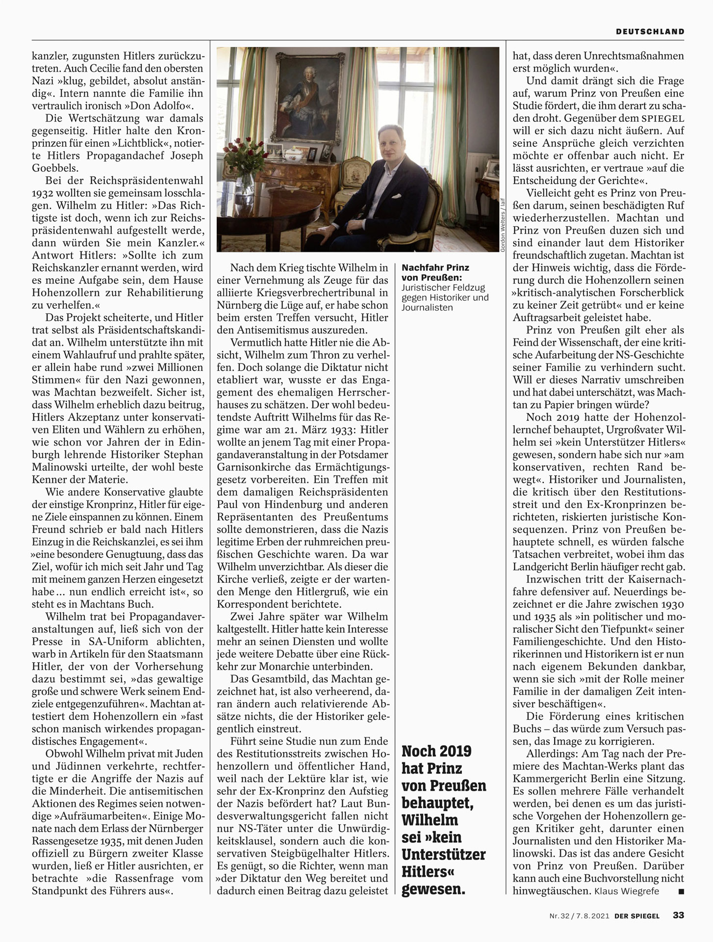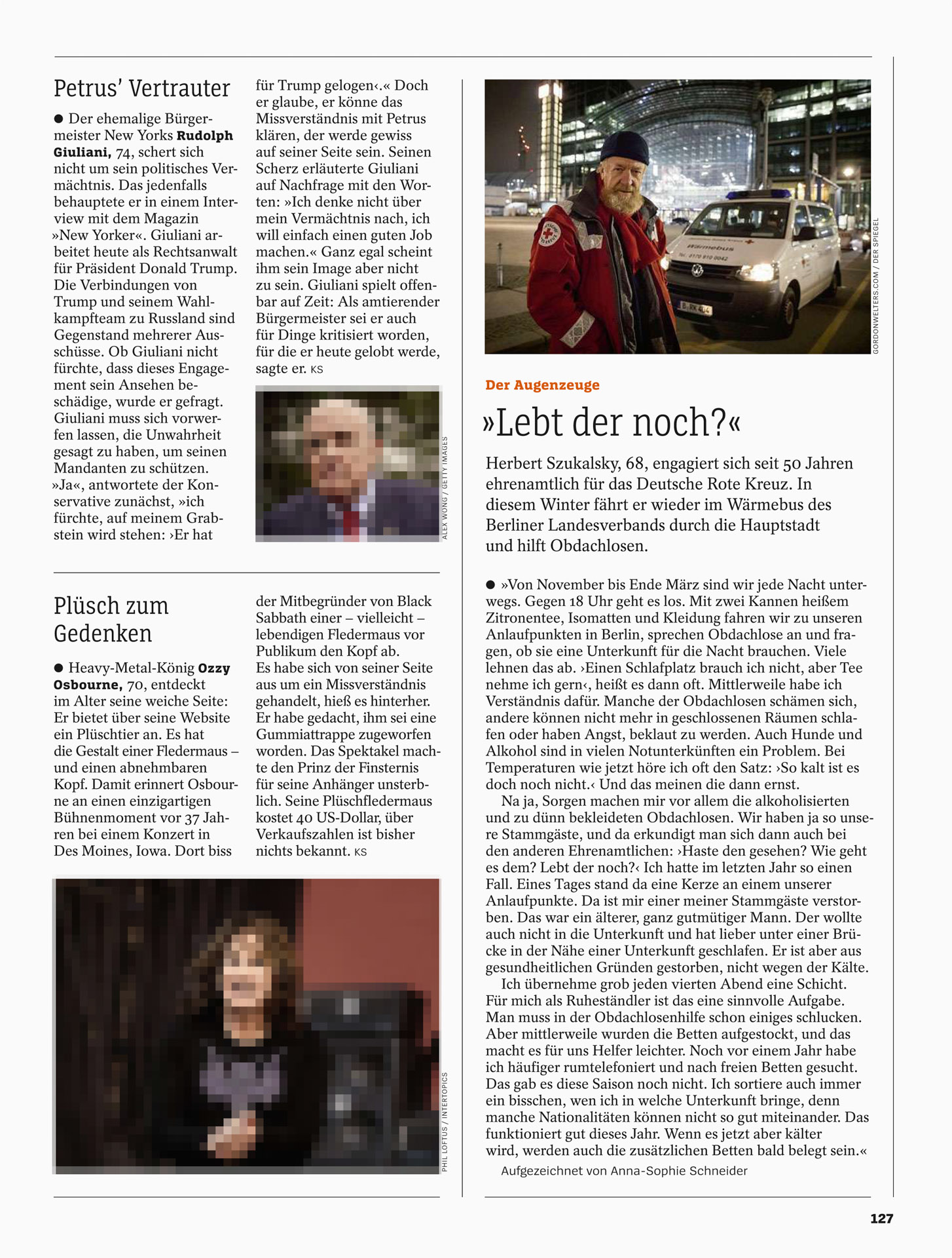 Veröffentlichungen aus Aufträgen für DER SPIEGEL, SPIEGEL GESCHICHTE, SPIEGEL WISSEN, Dein SPIEGEL, UNI SPIEGEL, SPIEGEL BESTSELLER und SPIEGEL CHRONIK